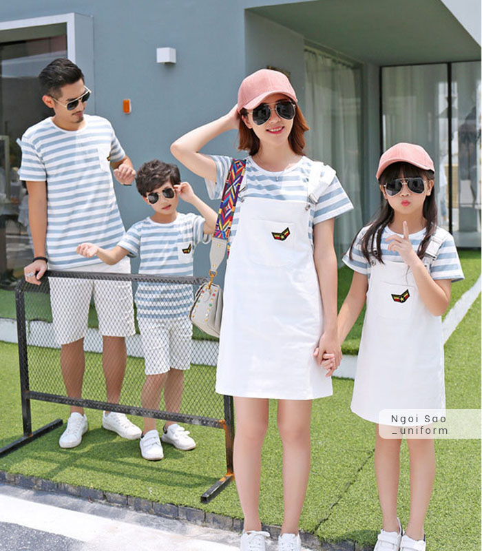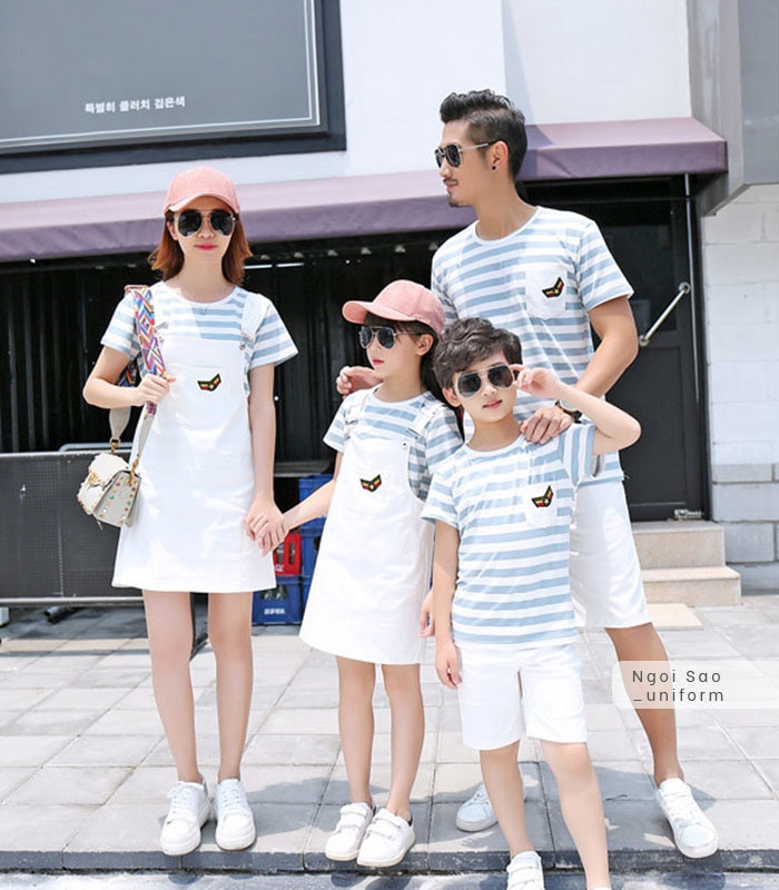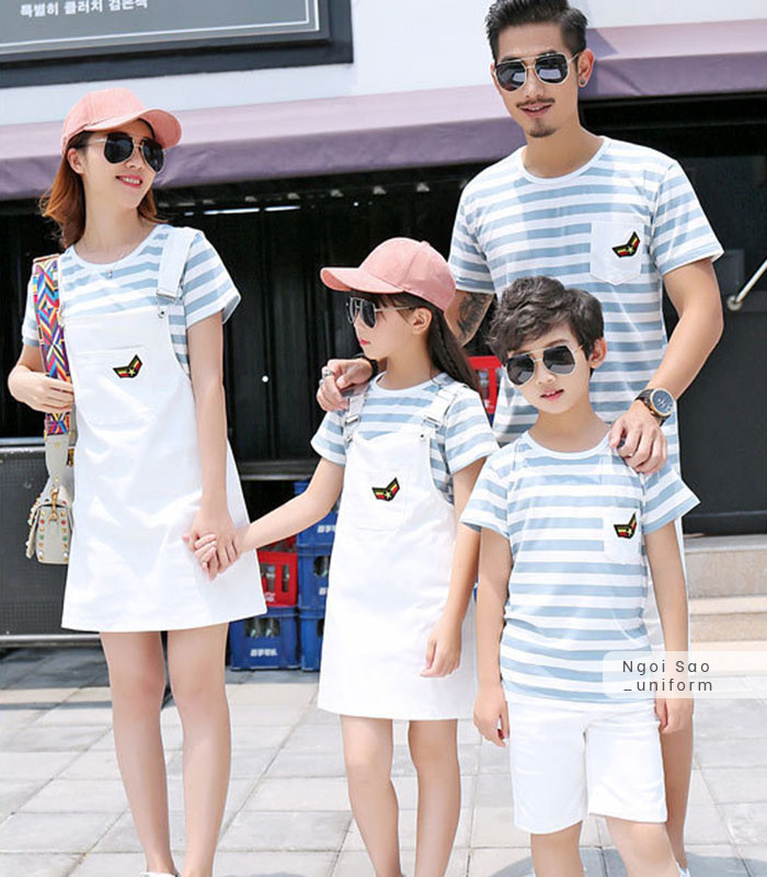 Áo đồng phục gia đình 4 người là một trong những mẫu áo hiện được tìm kiếm rất nhiều. Với mong muốn đem lại cho gia đình bạn những sự lựa chọn tốt nhất, Đồng phục Ngôi Sao cập nhật nhiều mẫu áo đồng phục gia đình cho 4 người mới nhất 2020 chắc chắn sẽ khiến bạn ứng ý. Nếu bạn đang tìm kiếm mẫu áo đồng phục gia đình phù hợp cho nhà mình, hãy cùng xem ngay nhé. Nếu bạn yêu thích phong cách chỉn chu, lịch sự nhưng vẫn thể hiện được sự gắn bó của gia đình thì có thể lựa chọn các mẫu áo thun, áo sơ mi có cổ làm đồng phục cho cả nhà. Nếu thích phong cách trẻ trung, năng động, các mẫu áo thun cổ tròn sẽ lý tưởng nhất, phù hợp với mọi hoạt động như đi chơi, đi du lịch, dạo phố, ăn uống, thăm hỏi ông bà... Trên các mẫu áo phông cổ tròn có thể dễ dàng in được rất nhiều hình thù, hoạ tiết, chữ viết độc đáo, hài hước theo ý muốn riêng của bạn. Hình in nổi bật, sắc nét, không bong tróc là một trong những ưu điểm nổi bật của công nghệ in tại Đồng phục Ngôi Sao mà không ở đâu có. Bên cạnh đó, các gia đình 4 người cũng thường lựa chọn mẫu áo phông, quần lửng/ quần jeans cho bố và con trai; áo váy cho mẹ và con gái. Mùa đông, bạn có thể lựa chọn áo đồng phục gia đình 4 người là áo khoác thun, áo hoodie, áo da hoặc áo dạ.