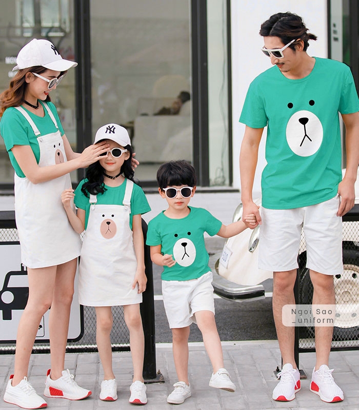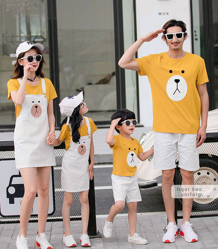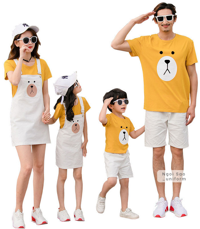 Áo đồng phục gia đình 4 người là một trong những mẫu áo hiện được tìm kiếm rất nhiều. Với mong muốn đem lại cho gia đình bạn những sự lựa chọn tốt nhất, Đồng phục Ngôi Sao cập nhật nhiều mẫu áo đồng phục gia đình cho 4 người mới nhất 2020 chắc chắn sẽ khiến bạn ứng ý. Nếu bạn đang tìm kiếm mẫu áo đồng phục gia đình phù hợp cho nhà mình, hãy cùng xem ngay nhé. Nếu bạn yêu thích phong cách chỉn chu, lịch sự nhưng vẫn thể hiện được sự gắn bó của gia đình thì có thể lựa chọn các mẫu áo thun, áo sơ mi có cổ làm đồng phục cho cả nhà. Nếu thích phong cách trẻ trung, năng động, các mẫu áo thun cổ tròn sẽ lý tưởng nhất, phù hợp với mọi hoạt động như đi chơi, đi du lịch, dạo phố, ăn uống, thăm hỏi ông bà... Trên các mẫu áo phông cổ tròn có thể dễ dàng in được rất nhiều hình thù, hoạ tiết, chữ viết độc đáo, hài hước theo ý muốn riêng của bạn. Hình in nổi bật, sắc nét, không bong tróc là một trong những ưu điểm nổi bật của công nghệ in tại Đồng phục Ngôi Sao mà không ở đâu có. Bên cạnh đó, các gia đình 4 người cũng thường lựa chọn mẫu áo phông, quần lửng/ quần jeans cho bố và con trai; áo váy cho mẹ và con gái. Mùa đông, bạn có thể lựa chọn áo đồng phục gia đình 4 người là áo khoác thun, áo hoodie, áo da hoặc áo dạ.