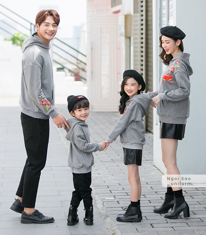 Áo đồng phục gia đình 4 người là một trong những mẫu áo hiện được tìm kiếm rất nhiều. Với mong muốn đem lại cho gia đình bạn những sự lựa chọn tốt nhất, Đồng phục Ngôi Sao cập nhật nhiều mẫu áo đồng phục gia đình cho 4 người mới nhất 2020 chắc chắn sẽ khiến bạn ứng ý. Nếu bạn đang tìm kiếm mẫu áo đồng phục gia đình phù hợp cho nhà mình, hãy cùng xem ngay nhé. Nếu bạn yêu thích phong cách chỉn chu, lịch sự nhưng vẫn thể hiện được sự gắn bó của gia đình thì có thể lựa chọn các mẫu áo thun, áo sơ mi có cổ làm đồng phục cho cả nhà. Nếu thích phong cách trẻ trung, năng động, các mẫu áo thun cổ tròn sẽ lý tưởng nhất, phù hợp với mọi hoạt động như đi chơi, đi du lịch, dạo phố, ăn uống, thăm hỏi ông bà... Trên các mẫu áo phông cổ tròn có thể dễ dàng in được rất nhiều hình thù, hoạ tiết, chữ viết độc đáo, hài hước theo ý muốn riêng của bạn. Hình in nổi bật, sắc nét, không bong tróc là một trong những ưu điểm nổi bật của công nghệ in tại Đồng phục Ngôi Sao mà không ở đâu có. Bên cạnh đó, các gia đình 4 người cũng thường lựa chọn mẫu áo phông, quần lửng/ quần jeans cho bố và con trai; áo váy cho mẹ và con gái. Mùa đông, bạn có thể lựa chọn áo đồng phục gia đình 4 người là áo khoác thun, áo hoodie, áo da hoặc áo dạ.