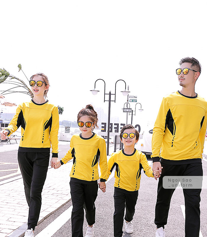 Áo đồng phục gia đình 4 người là một trong những mẫu áo hiện được tìm kiếm rất nhiều. Với mong muốn đem lại cho gia đình bạn những sự lựa chọn tốt nhất, Đồng phục Ngôi Sao cập nhật nhiều mẫu áo đồng phục gia đình cho 4 người mới nhất 2020 chắc chắn sẽ khiến bạn ứng ý. Nếu bạn đang tìm kiếm mẫu áo đồng phục gia đình phù hợp cho nhà mình, hãy cùng xem ngay nhé. Nếu bạn yêu thích phong cách chỉn chu, lịch sự nhưng vẫn thể hiện được sự gắn bó của gia đình thì có thể lựa chọn các mẫu áo thun, áo sơ mi có cổ làm đồng phục cho cả nhà. Nếu thích phong cách trẻ trung, năng động, các mẫu áo thun cổ tròn sẽ lý tưởng nhất, phù hợp với mọi hoạt động như đi chơi, đi du lịch, dạo phố, ăn uống, thăm hỏi ông bà... Trên các mẫu áo phông cổ tròn có thể dễ dàng in được rất nhiều hình thù, hoạ tiết, chữ viết độc đáo, hài hước theo ý muốn riêng của bạn. Hình in nổi bật, sắc nét, không bong tróc là một trong những ưu điểm nổi bật của công nghệ in tại Đồng phục Ngôi Sao mà không ở đâu có. Bên cạnh đó, các gia đình 4 người cũng thường lựa chọn mẫu áo phông, quần lửng/ quần jeans cho bố và con trai; áo váy cho mẹ và con gái. Mùa đông, bạn có thể lựa chọn áo đồng phục gia đình 4 người là áo khoác thun, áo hoodie, áo da hoặc áo dạ.