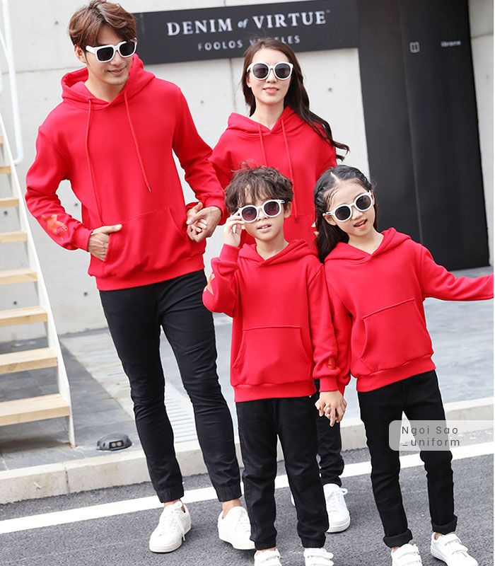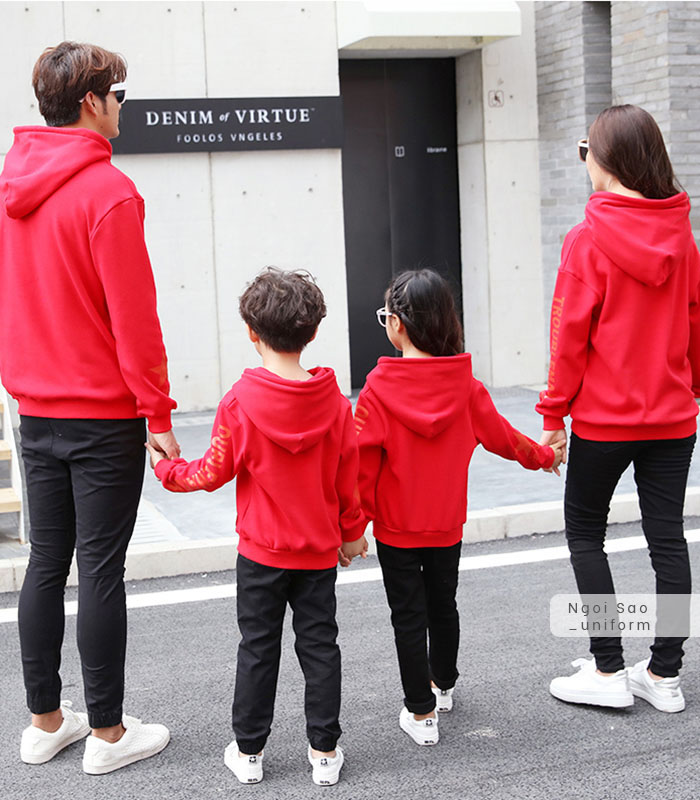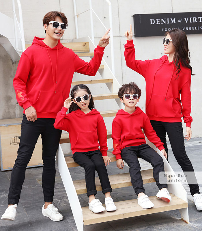 Áo đồng phục gia đình 4 người là một trong những mẫu áo hiện được tìm kiếm rất nhiều. Với mong muốn đem lại cho gia đình bạn những sự lựa chọn tốt nhất, Đồng phục Ngôi Sao cập nhật nhiều mẫu áo đồng phục gia đình cho 4 người mới nhất 2020 chắc chắn sẽ khiến bạn ứng ý. Nếu bạn đang tìm kiếm mẫu áo đồng phục gia đình phù hợp cho nhà mình, hãy cùng xem ngay nhé. Nếu bạn yêu thích phong cách chỉn chu, lịch sự nhưng vẫn thể hiện được sự gắn bó của gia đình thì có thể lựa chọn các mẫu áo thun, áo sơ mi có cổ làm đồng phục cho cả nhà. Nếu thích phong cách trẻ trung, năng động, các mẫu áo thun cổ tròn sẽ lý tưởng nhất, phù hợp với mọi hoạt động như đi chơi, đi du lịch, dạo phố, ăn uống, thăm hỏi ông bà... Trên các mẫu áo phông cổ tròn có thể dễ dàng in được rất nhiều hình thù, hoạ tiết, chữ viết độc đáo, hài hước theo ý muốn riêng của bạn. Hình in nổi bật, sắc nét, không bong tróc là một trong những ưu điểm nổi bật của công nghệ in tại Đồng phục Ngôi Sao mà không ở đâu có. Bên cạnh đó, các gia đình 4 người cũng thường lựa chọn mẫu áo phông, quần lửng/ quần jeans cho bố và con trai; áo váy cho mẹ và con gái. Mùa đông, bạn có thể lựa chọn áo đồng phục gia đình 4 người là áo khoác thun, áo hoodie, áo da hoặc áo dạ.
