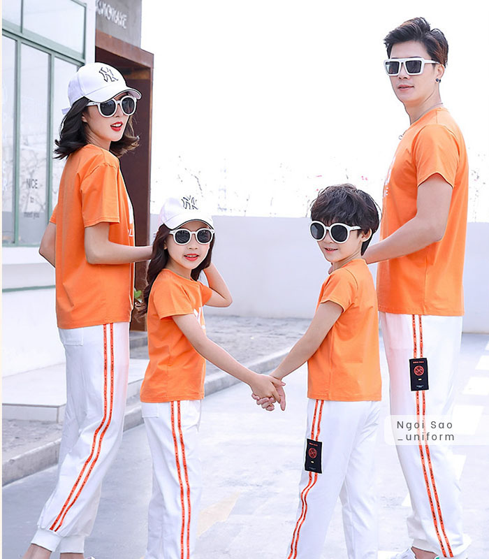 Áo đồng phục gia đình 4 người là một trong những mẫu áo hiện được tìm kiếm rất nhiều. Với mong muốn đem lại cho gia đình bạn những sự lựa chọn tốt nhất, Đồng phục Ngôi Sao cập nhật nhiều mẫu áo đồng phục gia đình cho 4 người mới nhất 2020 chắc chắn sẽ khiến bạn ứng ý. Nếu bạn đang tìm kiếm mẫu áo đồng phục gia đình phù hợp cho nhà mình, hãy cùng xem ngay nhé. Nếu bạn yêu thích phong cách chỉn chu, lịch sự nhưng vẫn thể hiện được sự gắn bó của gia đình thì có thể lựa chọn các mẫu áo thun, áo sơ mi có cổ làm đồng phục cho cả nhà. Nếu thích phong cách trẻ trung, năng động, các mẫu áo thun cổ tròn sẽ lý tưởng nhất, phù hợp với mọi hoạt động như đi chơi, đi du lịch, dạo phố, ăn uống, thăm hỏi ông bà... Trên các mẫu áo phông cổ tròn có thể dễ dàng in được rất nhiều hình thù, hoạ tiết, chữ viết độc đáo, hài hước theo ý muốn riêng của bạn. Hình in nổi bật, sắc nét, không bong tróc là một trong những ưu điểm nổi bật của công nghệ in tại Đồng phục Ngôi Sao mà không ở đâu có. Bên cạnh đó, các gia đình 4 người cũng thường lựa chọn mẫu áo phông, quần lửng/ quần jeans cho bố và con trai; áo váy cho mẹ và con gái. Mùa đông, bạn có thể lựa chọn áo đồng phục gia đình 4 người là áo khoác thun, áo hoodie, áo da hoặc áo dạ.