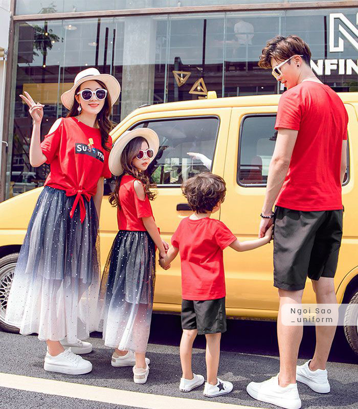 Một trong những chất liệu chưa bao giờ lỗi mỗi luôn được lựa chọn làm đồng phục, trong đó có cả đồng phục gia đình là vải thun. Để sở hữu những chiếc áo thun đồng phục gia đình không hề khó bởi trên thị trường xuất hiện rất nhiều sản phẩm bán sẵn giá cực rẻ, nhưng để có những chiếc áo phông đồng phục gia đình chất cả về vải may, thiết kế thì chỉ có tại Đồng phục Ngôi Sao – xưởng may đồng phục lớn và uy tín nhất tại Hà Nội. Áo thun đồng phục gia đình được mặc thường xuyên trong tất cả các dịp như đi chơi, du lịch hay chỉ đơn giản là cả gia đình cùng ra ngoài đi dạo, đi ăn uống... vì vậy, chiếc áo phông đồng phục cho gia đình cần có chất liệu cao cấp, bền đẹp, cõ giãn tốt nhưng không bị bai nhão, xù lông sau nhiều lần giặt; hình in lên màu chuẩn, sắc nét, không bị bong tróc; luôn khiến người mặc cảm thấy thoải mái, dễ chịu, đặc biệt phải thân thiện với làn da nhạy cảm của trẻ nhỏ. Đồng phục Ngôi Sao có đủ các mẫu thiết kế từ áo thun đồng phục cổ tròn, cổ đứng, áo dài tay, áo ngắn tay... để khách hàng lựa chọn phù hợp với nhu cầu.