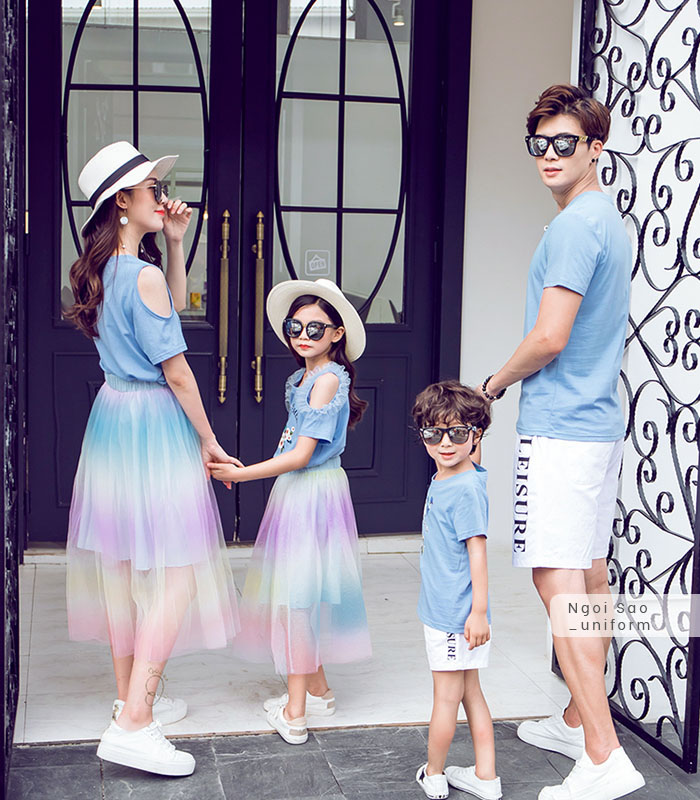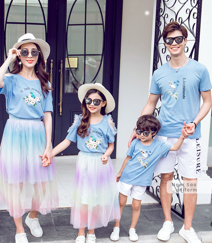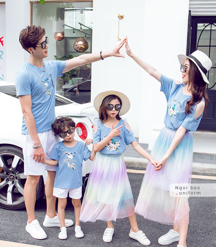 Một trong những chất liệu chưa bao giờ lỗi mỗi luôn được lựa chọn làm đồng phục, trong đó có cả đồng phục gia đình là vải thun. Để sở hữu những chiếc áo thun đồng phục gia đình không hề khó bởi trên thị trường xuất hiện rất nhiều sản phẩm bán sẵn giá cực rẻ, nhưng để có những chiếc áo phông đồng phục gia đình chất cả về vải may, thiết kế thì chỉ có tại Đồng phục Ngôi Sao – xưởng may đồng phục lớn và uy tín nhất tại Hà Nội. Áo thun đồng phục gia đình được mặc thường xuyên trong tất cả các dịp như đi chơi, du lịch hay chỉ đơn giản là cả gia đình cùng ra ngoài đi dạo, đi ăn uống... vì vậy, chiếc áo phông đồng phục cho gia đình cần có chất liệu cao cấp, bền đẹp, cõ giãn tốt nhưng không bị bai nhão, xù lông sau nhiều lần giặt; hình in lên màu chuẩn, sắc nét, không bị bong tróc; luôn khiến người mặc cảm thấy thoải mái, dễ chịu, đặc biệt phải thân thiện với làn da nhạy cảm của trẻ nhỏ. Đồng phục Ngôi Sao có đủ các mẫu thiết kế từ áo thun đồng phục cổ tròn, cổ đứng, áo dài tay, áo ngắn tay... để khách hàng lựa chọn phù hợp với nhu cầu.