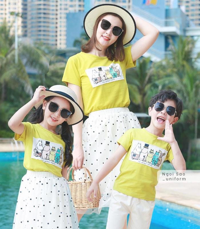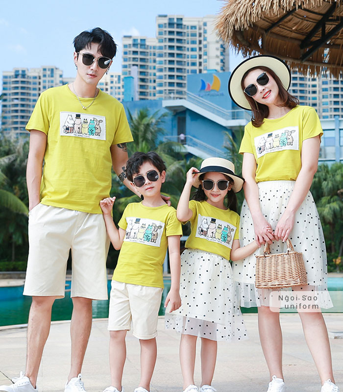 Một trong những chất liệu chưa bao giờ lỗi mỗi luôn được lựa chọn làm đồng phục, trong đó có cả đồng phục gia đình là vải thun. Để sở hữu những chiếc áo thun đồng phục gia đình không hề khó bởi trên thị trường xuất hiện rất nhiều sản phẩm bán sẵn giá cực rẻ, nhưng để có những chiếc áo phông đồng phục gia đình chất cả về vải may, thiết kế thì chỉ có tại Đồng phục Ngôi Sao – xưởng may đồng phục lớn và uy tín nhất tại Hà Nội. Áo thun đồng phục gia đình được mặc thường xuyên trong tất cả các dịp như đi chơi, du lịch hay chỉ đơn giản là cả gia đình cùng ra ngoài đi dạo, đi ăn uống... vì vậy, chiếc áo phông đồng phục cho gia đình cần có chất liệu cao cấp, bền đẹp, cõ giãn tốt nhưng không bị bai nhão, xù lông sau nhiều lần giặt; hình in lên màu chuẩn, sắc nét, không bị bong tróc; luôn khiến người mặc cảm thấy thoải mái, dễ chịu, đặc biệt phải thân thiện với làn da nhạy cảm của trẻ nhỏ. Đồng phục Ngôi Sao có đủ các mẫu thiết kế từ áo thun đồng phục cổ tròn, cổ đứng, áo dài tay, áo ngắn tay... để khách hàng lựa chọn phù hợp với nhu cầu.