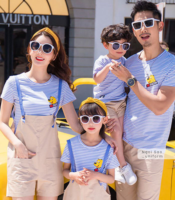 Một trong những chất liệu chưa bao giờ lỗi mỗi luôn được lựa chọn làm đồng phục, trong đó có cả đồng phục gia đình là vải thun. Để sở hữu những chiếc áo thun đồng phục gia đình không hề khó bởi trên thị trường xuất hiện rất nhiều sản phẩm bán sẵn giá cực rẻ, nhưng để có những chiếc áo phông đồng phục gia đình chất cả về vải may, thiết kế thì chỉ có tại Đồng phục Ngôi Sao – xưởng may đồng phục lớn và uy tín nhất tại Hà Nội. Áo thun đồng phục gia đình được mặc thường xuyên trong tất cả các dịp như đi chơi, du lịch hay chỉ đơn giản là cả gia đình cùng ra ngoài đi dạo, đi ăn uống... vì vậy, chiếc áo phông đồng phục cho gia đình cần có chất liệu cao cấp, bền đẹp, cõ giãn tốt nhưng không bị bai nhão, xù lông sau nhiều lần giặt; hình in lên màu chuẩn, sắc nét, không bị bong tróc; luôn khiến người mặc cảm thấy thoải mái, dễ chịu, đặc biệt phải thân thiện với làn da nhạy cảm của trẻ nhỏ. Đồng phục Ngôi Sao có đủ các mẫu thiết kế từ áo thun đồng phục cổ tròn, cổ đứng, áo dài tay, áo ngắn tay... để khách hàng lựa chọn phù hợp với nhu cầu.