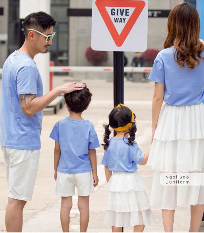 Một trong những chất liệu chưa bao giờ lỗi mỗi luôn được lựa chọn làm đồng phục, trong đó có cả đồng phục gia đình là vải thun. Để sở hữu những chiếc áo thun đồng phục gia đình không hề khó bởi trên thị trường xuất hiện rất nhiều sản phẩm bán sẵn giá cực rẻ, nhưng để có những chiếc áo phông đồng phục gia đình chất cả về vải may, thiết kế thì chỉ có tại Đồng phục Ngôi Sao – xưởng may đồng phục lớn và uy tín nhất tại Hà Nội. Áo thun đồng phục gia đình được mặc thường xuyên trong tất cả các dịp như đi chơi, du lịch hay chỉ đơn giản là cả gia đình cùng ra ngoài đi dạo, đi ăn uống... vì vậy, chiếc áo phông đồng phục cho gia đình cần có chất liệu cao cấp, bền đẹp, cõ giãn tốt nhưng không bị bai nhão, xù lông sau nhiều lần giặt; hình in lên màu chuẩn, sắc nét, không bị bong tróc; luôn khiến người mặc cảm thấy thoải mái, dễ chịu, đặc biệt phải thân thiện với làn da nhạy cảm của trẻ nhỏ. Đồng phục Ngôi Sao có đủ các mẫu thiết kế từ áo thun đồng phục cổ tròn, cổ đứng, áo dài tay, áo ngắn tay... để khách hàng lựa chọn phù hợp với nhu cầu.