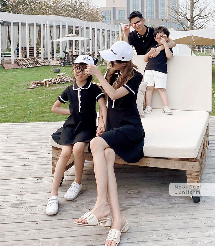 -Bên cạnh đồng phục áo thun, áo polo, áo sơ mi, áo hoodie, áo dài... còn có đồng phục áo váy gia đình dành cho mẹ và con gái. Đồng phục Ngôi Sao xin giới thiệu tới bạn những mẫu đồng phục áo váy gia đình được may đo, thiết kế theo yêu cầu, bền đẹp về chất lượng, đang hot trên thị trường đồng phục hiện nay. Áo váy gia đình hiện đang được yêu thích bởi những gia đình có cả bé trai và bé gái, mẹ và bé gái có thể cùng nhau diện chiếc áo váy dễ thương, trong khi bố và con trai có thể diện áo cùng tone. Với những bộ đồng phục áo váy gia đình, cả nhà sẽ vô cùng nổi bật giữa đám đông. Tại Đồng phục Ngôi Sao, áo váy đồng phục gia đình có rất nhiều kiểu dáng, mẫu mã khác nhau cho các mẹ tha hồ lựa chọn. Các mẫu đầm như maxi, rớt vai, đầm suông... vừa thích hợp đi biển, đi chơi, dạo phố, gặp gỡ bạn bè còn phù hợp với các bữa tiệc gia đình. Những chiếc váy này không những trẻ trung, năng động mà còn rất thời trang. Nhờ có những set đồng phục áo váy gia đình, cả nhà mình sẽ không cần phải đau đầu suy nghĩ mặc gì nữa, chỉ cần một set đồ, cả gia đình có thể cùng nhau đi bất kỳ nơi đâu.