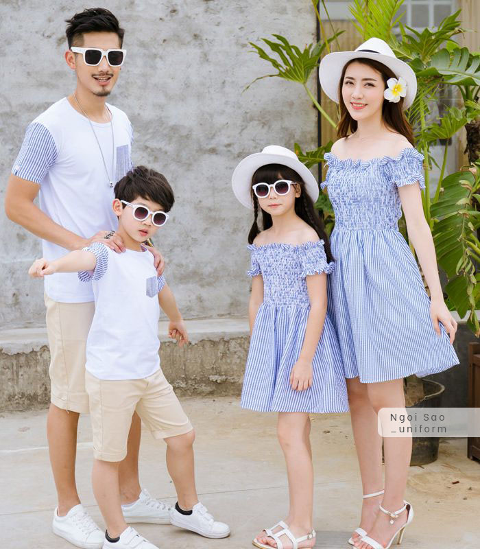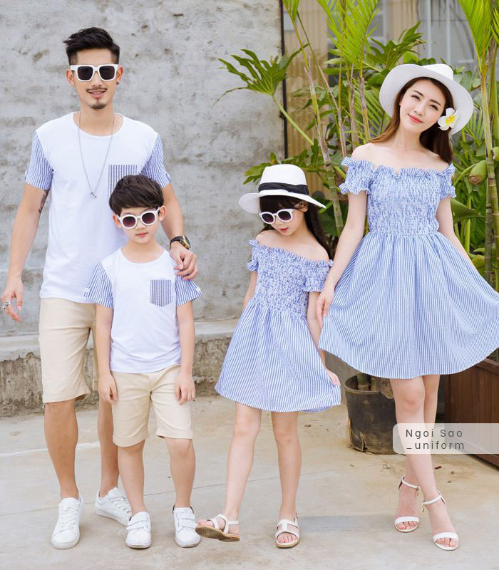 -Bên cạnh đồng phục áo thun, áo polo, áo sơ mi, áo hoodie, áo dài... còn có đồng phục áo váy gia đình dành cho mẹ và con gái. Đồng phục Ngôi Sao xin giới thiệu tới bạn những mẫu đồng phục áo váy gia đình được may đo, thiết kế theo yêu cầu, bền đẹp về chất lượng, đang hot trên thị trường đồng phục hiện nay. Áo váy gia đình hiện đang được yêu thích bởi những gia đình có cả bé trai và bé gái, mẹ và bé gái có thể cùng nhau diện chiếc áo váy dễ thương, trong khi bố và con trai có thể diện áo cùng tone. Với những bộ đồng phục áo váy gia đình, cả nhà sẽ vô cùng nổi bật giữa đám đông. Tại Đồng phục Ngôi Sao, áo váy đồng phục gia đình có rất nhiều kiểu dáng, mẫu mã khác nhau cho các mẹ tha hồ lựa chọn. Các mẫu đầm như maxi, rớt vai, đầm suông... vừa thích hợp đi biển, đi chơi, dạo phố, gặp gỡ bạn bè còn phù hợp với các bữa tiệc gia đình. Những chiếc váy này không những trẻ trung, năng động mà còn rất thời trang. Nhờ có những set đồng phục áo váy gia đình, cả nhà mình sẽ không cần phải đau đầu suy nghĩ mặc gì nữa, chỉ cần một set đồ, cả gia đình có thể cùng nhau đi bất kỳ nơi đâu.