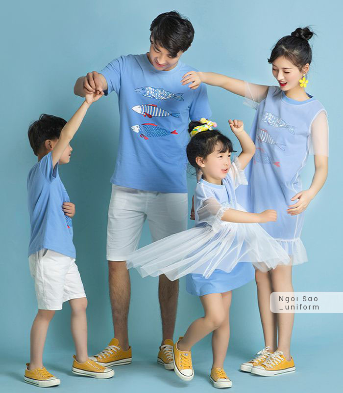 -Bên cạnh đồng phục áo thun, áo polo, áo sơ mi, áo hoodie, áo dài... còn có đồng phục áo váy gia đình dành cho mẹ và con gái. Đồng phục Ngôi Sao xin giới thiệu tới bạn những mẫu đồng phục áo váy gia đình được may đo, thiết kế theo yêu cầu, bền đẹp về chất lượng, đang hot trên thị trường đồng phục hiện nay. Áo váy gia đình hiện đang được yêu thích bởi những gia đình có cả bé trai và bé gái, mẹ và bé gái có thể cùng nhau diện chiếc áo váy dễ thương, trong khi bố và con trai có thể diện áo cùng tone. Với những bộ đồng phục áo váy gia đình, cả nhà sẽ vô cùng nổi bật giữa đám đông. Tại Đồng phục Ngôi Sao, áo váy đồng phục gia đình có rất nhiều kiểu dáng, mẫu mã khác nhau cho các mẹ tha hồ lựa chọn. Các mẫu đầm như maxi, rớt vai, đầm suông... vừa thích hợp đi biển, đi chơi, dạo phố, gặp gỡ bạn bè còn phù hợp với các bữa tiệc gia đình. Những chiếc váy này không những trẻ trung, năng động mà còn rất thời trang. Nhờ có những set đồng phục áo váy gia đình, cả nhà mình sẽ không cần phải đau đầu suy nghĩ mặc gì nữa, chỉ cần một set đồ, cả gia đình có thể cùng nhau đi bất kỳ nơi đâu.