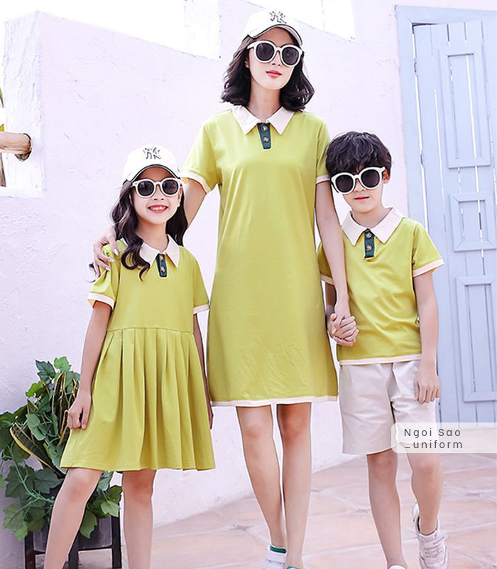 -Bên cạnh đồng phục áo thun, áo polo, áo sơ mi, áo hoodie, áo dài... còn có đồng phục áo váy gia đình dành cho mẹ và con gái. Đồng phục Ngôi Sao xin giới thiệu tới bạn những mẫu đồng phục áo váy gia đình được may đo, thiết kế theo yêu cầu, bền đẹp về chất lượng, đang hot trên thị trường đồng phục hiện nay. Áo váy gia đình hiện đang được yêu thích bởi những gia đình có cả bé trai và bé gái, mẹ và bé gái có thể cùng nhau diện chiếc áo váy dễ thương, trong khi bố và con trai có thể diện áo cùng tone. Với những bộ đồng phục áo váy gia đình, cả nhà sẽ vô cùng nổi bật giữa đám đông. Tại Đồng phục Ngôi Sao, áo váy đồng phục gia đình có rất nhiều kiểu dáng, mẫu mã khác nhau cho các mẹ tha hồ lựa chọn. Các mẫu đầm như maxi, rớt vai, đầm suông... vừa thích hợp đi biển, đi chơi, dạo phố, gặp gỡ bạn bè còn phù hợp với các bữa tiệc gia đình. Những chiếc váy này không những trẻ trung, năng động mà còn rất thời trang. Nhờ có những set đồng phục áo váy gia đình, cả nhà mình sẽ không cần phải đau đầu suy nghĩ mặc gì nữa, chỉ cần một set đồ, cả gia đình có thể cùng nhau đi bất kỳ nơi đâu.