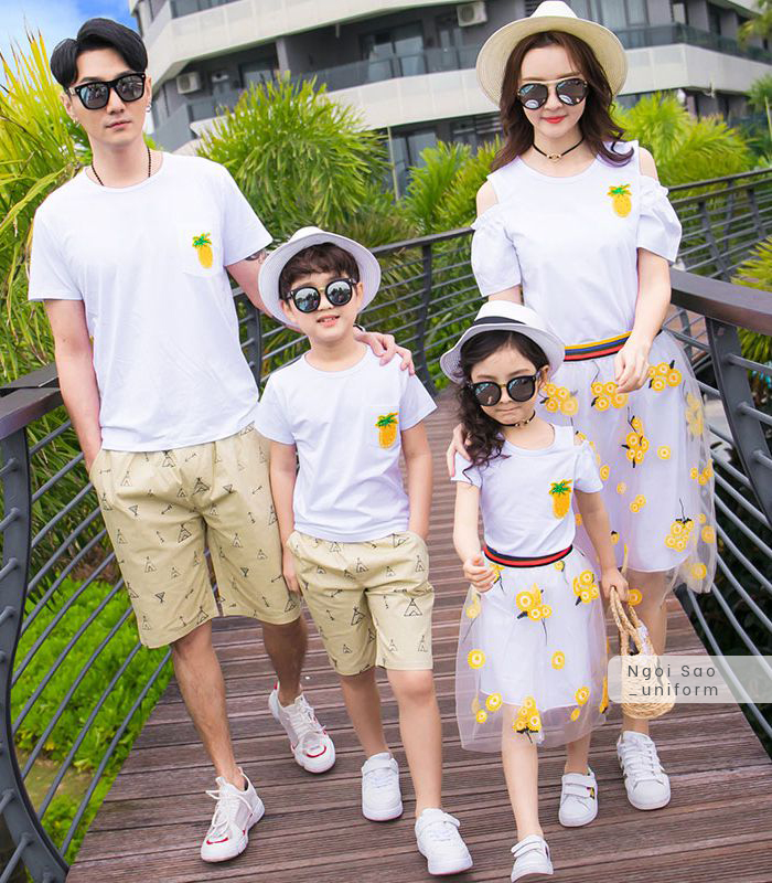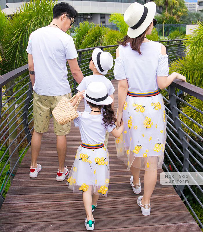 -Bên cạnh đồng phục áo thun, áo polo, áo sơ mi, áo hoodie, áo dài... còn có đồng phục áo váy gia đình dành cho mẹ và con gái. Đồng phục Ngôi Sao xin giới thiệu tới bạn những mẫu đồng phục áo váy gia đình được may đo, thiết kế theo yêu cầu, bền đẹp về chất lượng, đang hot trên thị trường đồng phục hiện nay. Áo váy gia đình hiện đang được yêu thích bởi những gia đình có cả bé trai và bé gái, mẹ và bé gái có thể cùng nhau diện chiếc áo váy dễ thương, trong khi bố và con trai có thể diện áo cùng tone. Với những bộ đồng phục áo váy gia đình, cả nhà sẽ vô cùng nổi bật giữa đám đông. Tại Đồng phục Ngôi Sao, áo váy đồng phục gia đình có rất nhiều kiểu dáng, mẫu mã khác nhau cho các mẹ tha hồ lựa chọn. Các mẫu đầm như maxi, rớt vai, đầm suông... vừa thích hợp đi biển, đi chơi, dạo phố, gặp gỡ bạn bè còn phù hợp với các bữa tiệc gia đình. Những chiếc váy này không những trẻ trung, năng động mà còn rất thời trang. Nhờ có những set đồng phục áo váy gia đình, cả nhà mình sẽ không cần phải đau đầu suy nghĩ mặc gì nữa, chỉ cần một set đồ, cả gia đình có thể cùng nhau đi bất kỳ nơi đâu.